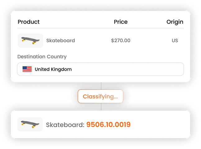 Classify products with Harmonized System (HS) codes at both the universal HS6 level and country-specific Fully Qualified (FQ) level.