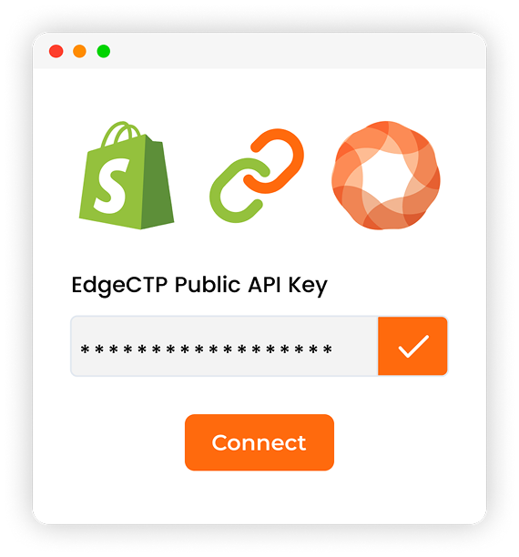 Sign up at edgectp.com. Get your API key. Paste them into the Shopify settings. And Connect with your Shopify store.