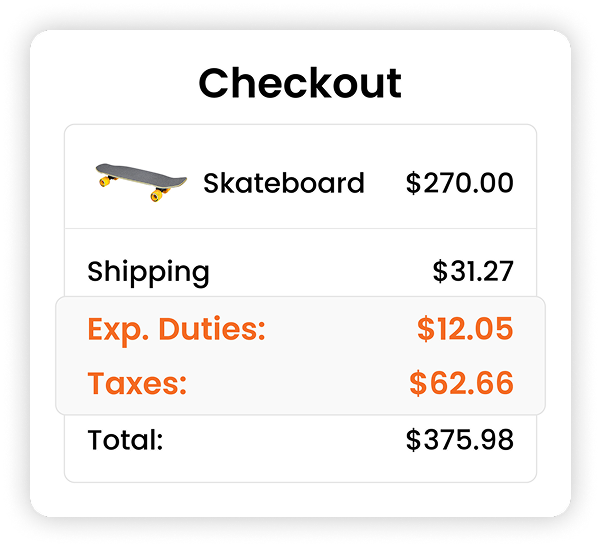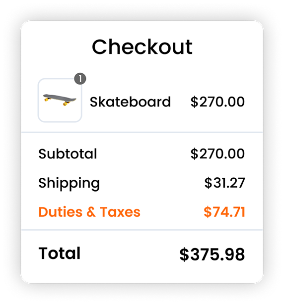 EdgeTariff shows to overseas buyer the cost of goods, shipping rates, duties and taxes, which summed together is the Total Landed Cost (TLC), on the checkout. This transparency on the checkout allows the buyer to make an informed decision BEFORE making the purchase. As a result, buyer’s remorse is eliminated from a price point of view, which encourage sales, and repeat purchases increase because the uncertainty of duties and taxes is removed.