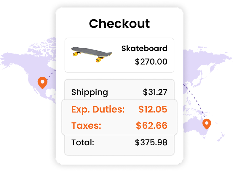 Overseas buyers now see the full landed cost at checkout. Fewer surprises and returns, more completed international orders.