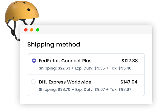 Show overseas buyers the complete cost breakdown at checkout before they pay — no surprises, no abandoned carts, no refused deliveries.