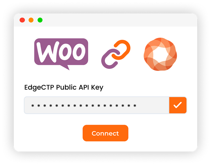 Sign up at EdgeCTP.com, paste your API key into the plugin settings. Your WooCommerce store is now connected.